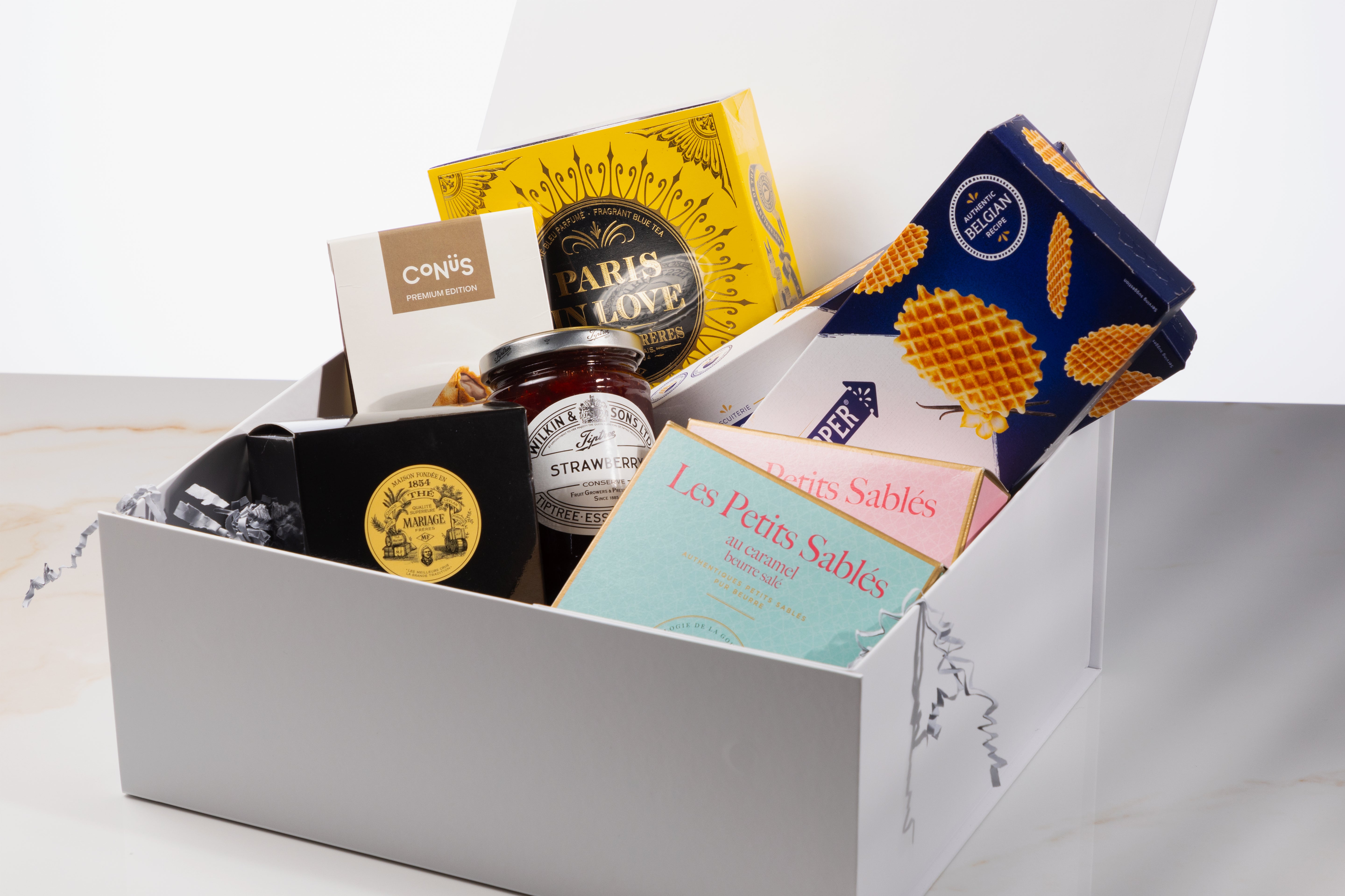 A romantic selection of European tea and refined sweets, beautifully curated for elegant gifting or indulgent afternoons.